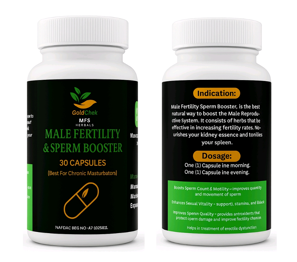 Goldchek herbals helps to boosts sperm count and motility, improves quantity and movement of sperm.