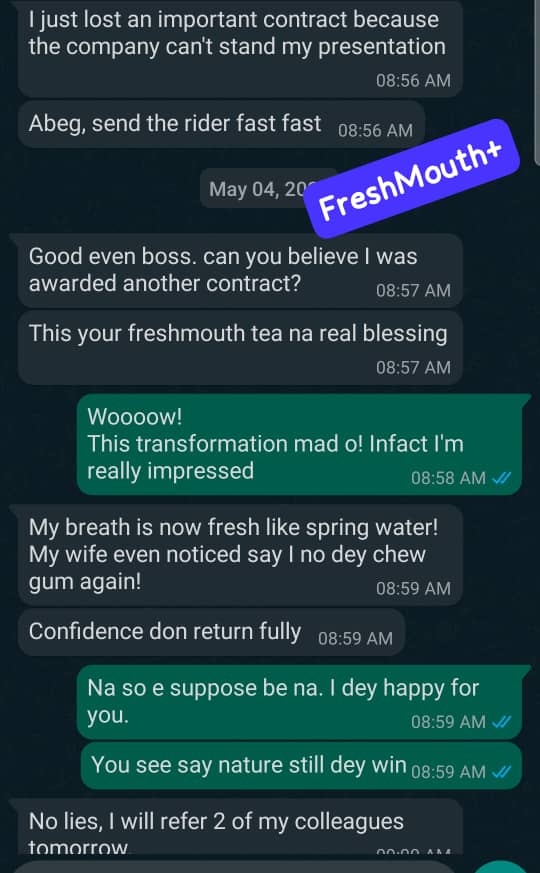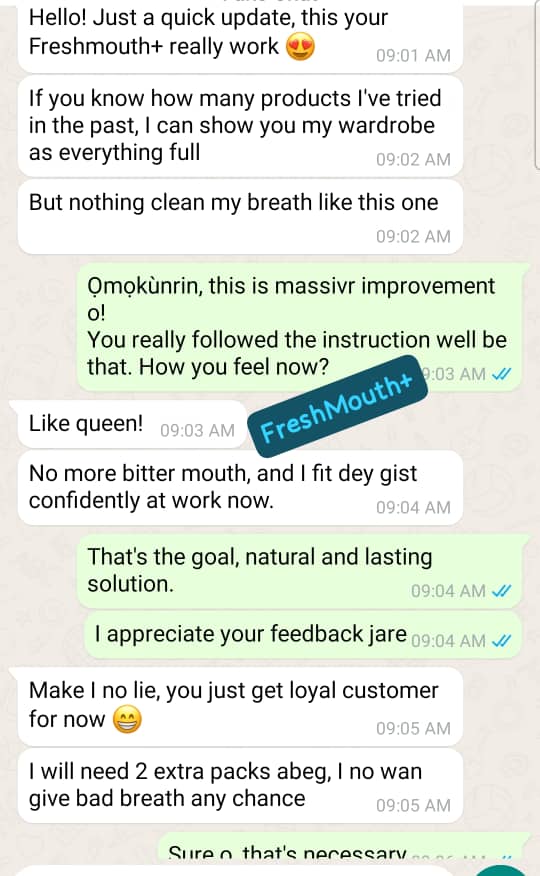The odour in my mouth was no longer there. Right now, my confidence is back. The name of the product is.